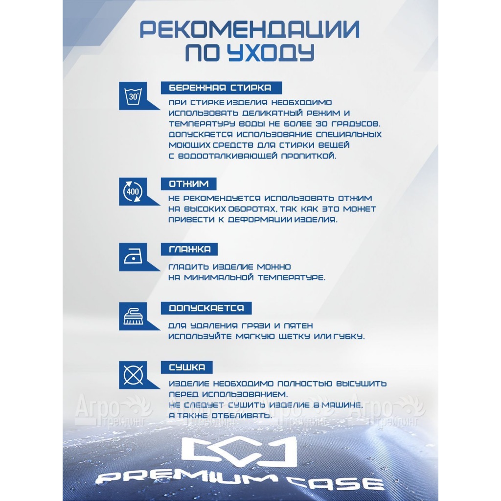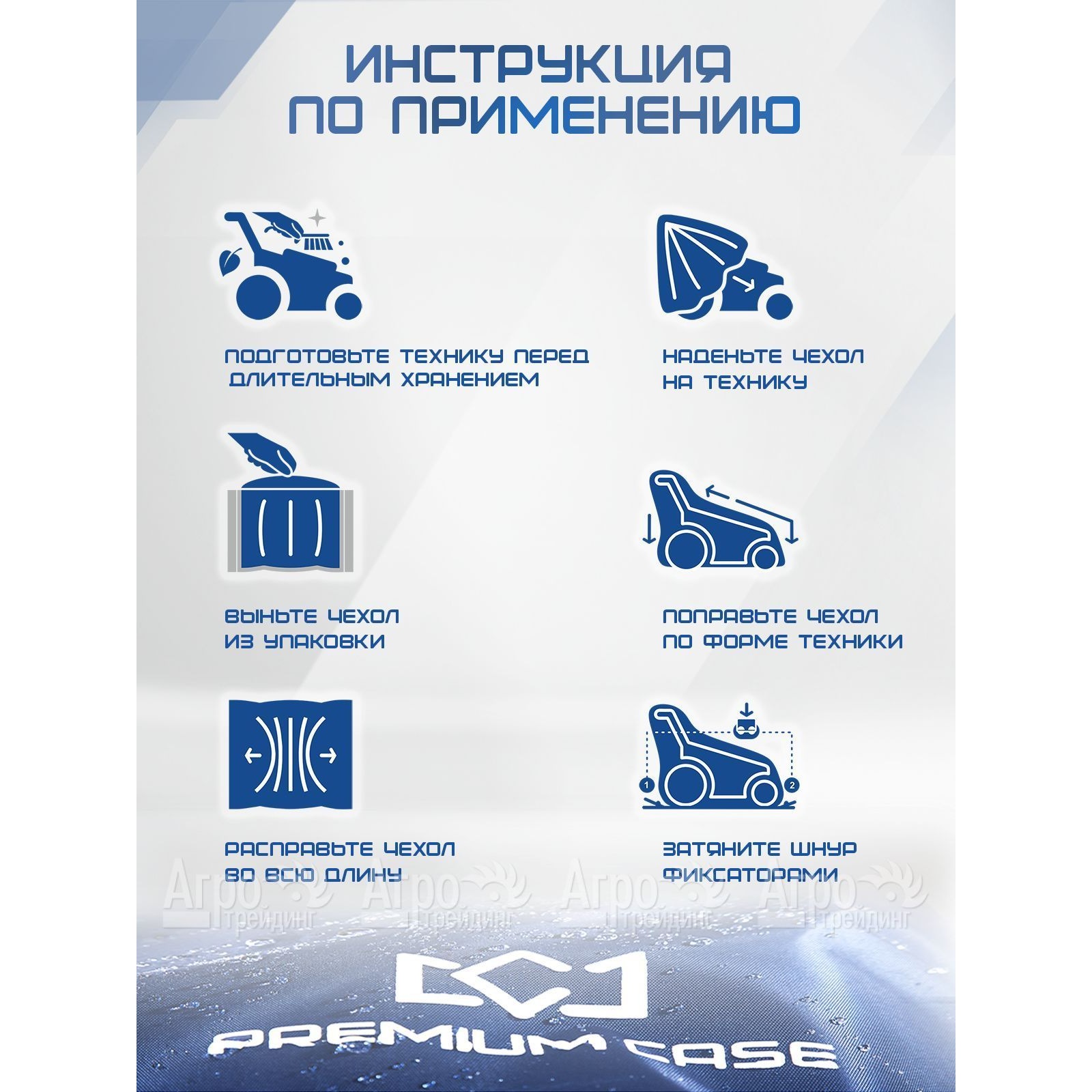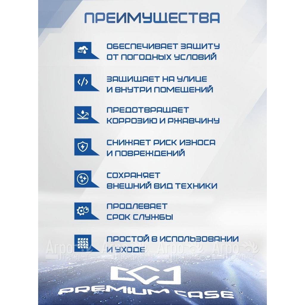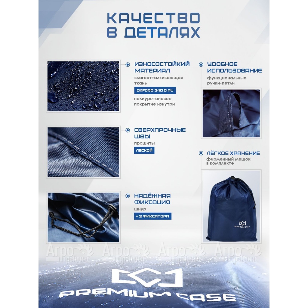Два надежных фиксатора (спереди и сзади) и сверхпрочный шнурок внизу чехла обеспечивают его плотное прилегание к технике и гарантируют безупречную защиту от непогоды и каких-либо повреждений. Для удобства использования чехол оснащен практичными петельчатыми ручками, что дает возможность быстро как одевать, так снимать его с техники.