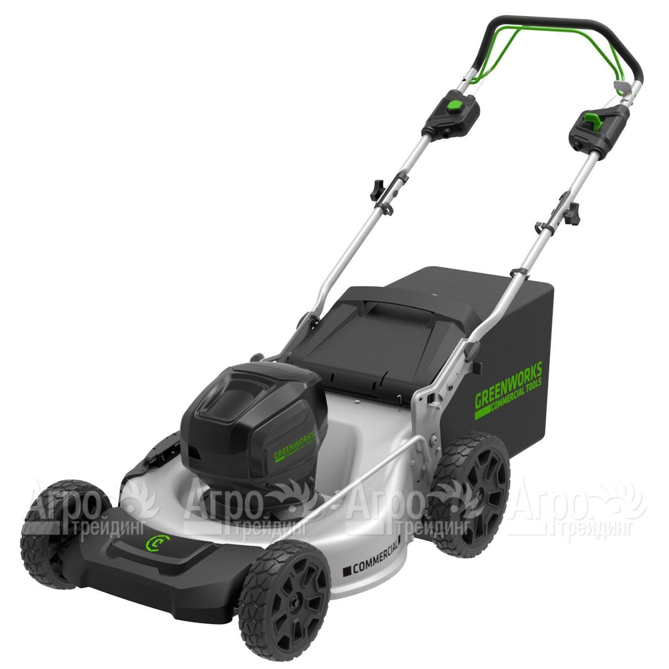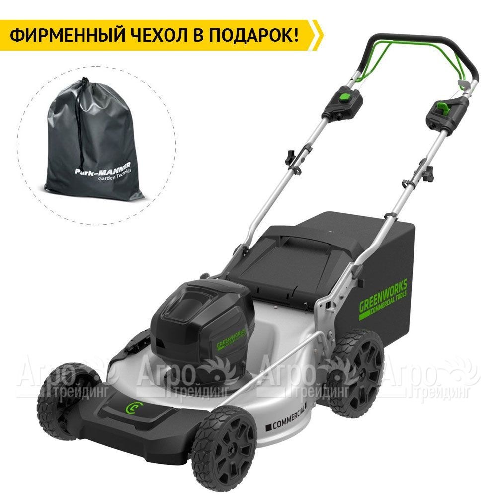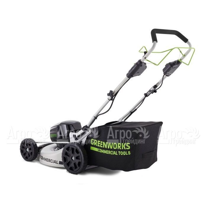 На фотографии Газонокосилка аккумуляторная GreenWorks GC82LM51SP (без батареи и зарядного устройства):