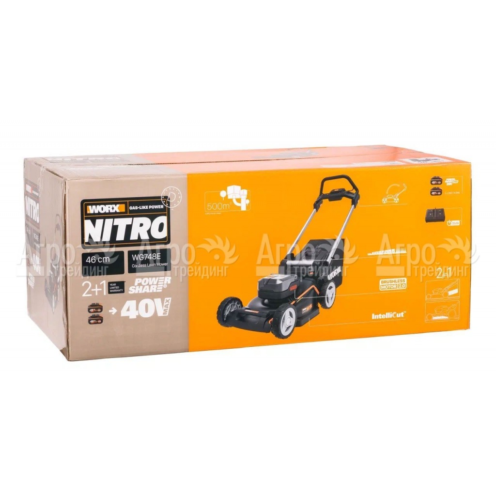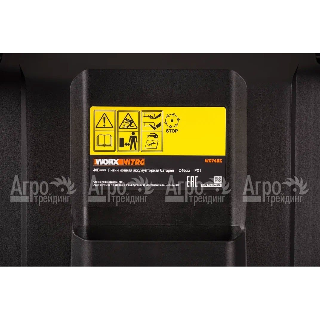 На фотографии Газонокосилка аккумуляторная Worx WG748E: