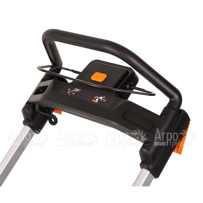• Складная ручка упрощает хранение и транспортировку газонокосилки, экономя пространство в гараже или сарае.